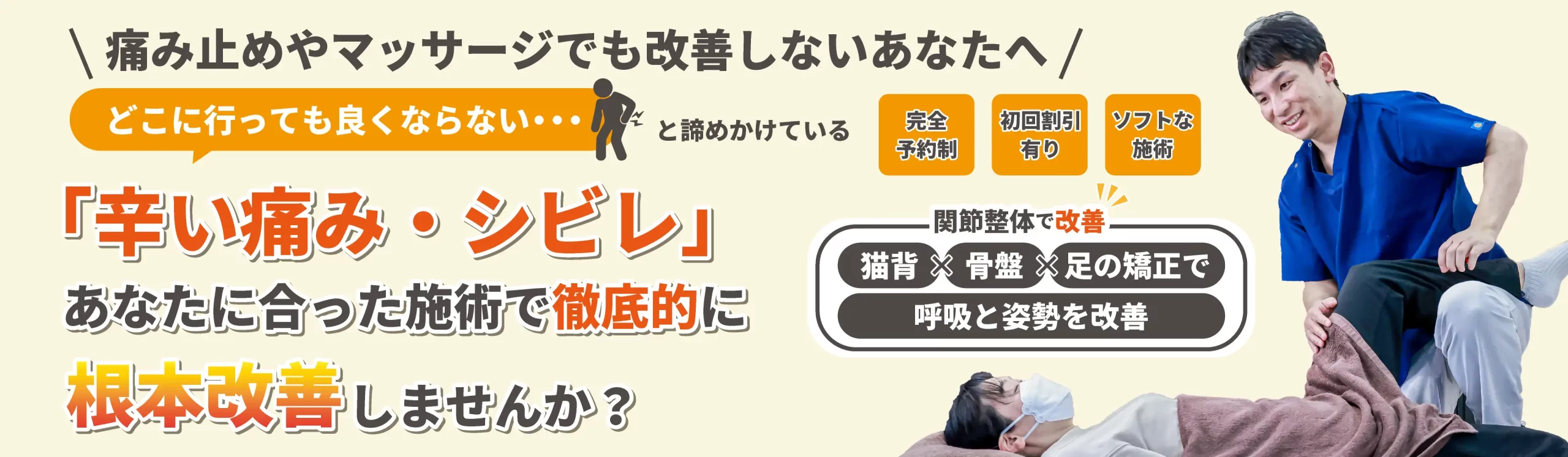 当院は「根本から不調を解消する」事に特化した整体院です。