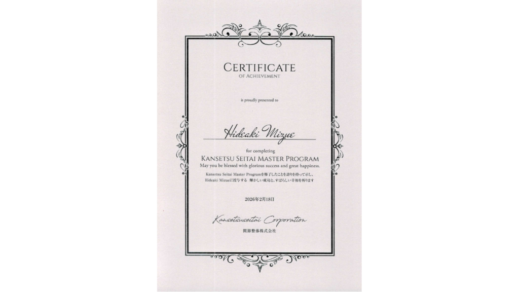 つのだ式関節整体マスタープログラム修了にて、大垣でも提供できる準備が出来ました。